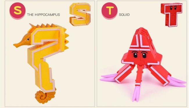 Los productos incluyen de la A a la Z, un total de 26 letras. Cada letra se puede transformar en dinosaurio o animales por separado. Además, combina 3 o 4 letras para construir el clan mech.