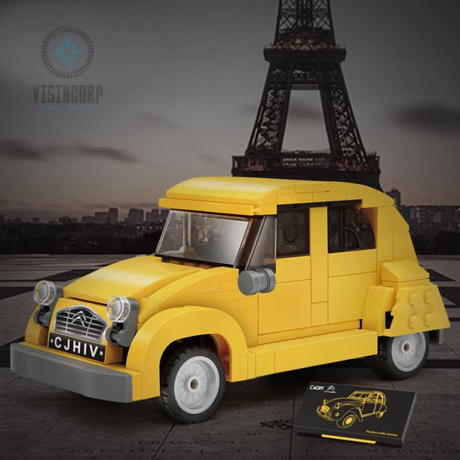 5. Además, la minifigura preparada, la cámara y la placa de identificación con licencia, a juego con el automóvil, posando para diferentes fotografías, se ajustan a las características del estilo romántico de la calle francesa.