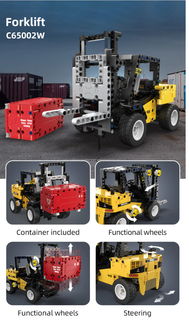¡Presentamos el juego de montacargas CaDA (C65002W) para niños que aman los camiones y la construcción! Este montacargas de juguete es como uno real, con horquillas funcionales que les permiten cargar y descargar carga desde cualquier lugar. La función de conducción les permite tomar el control de su carga, lo que la convierte en la elección perfecta para la diversión imaginativa en el tiempo de juego.